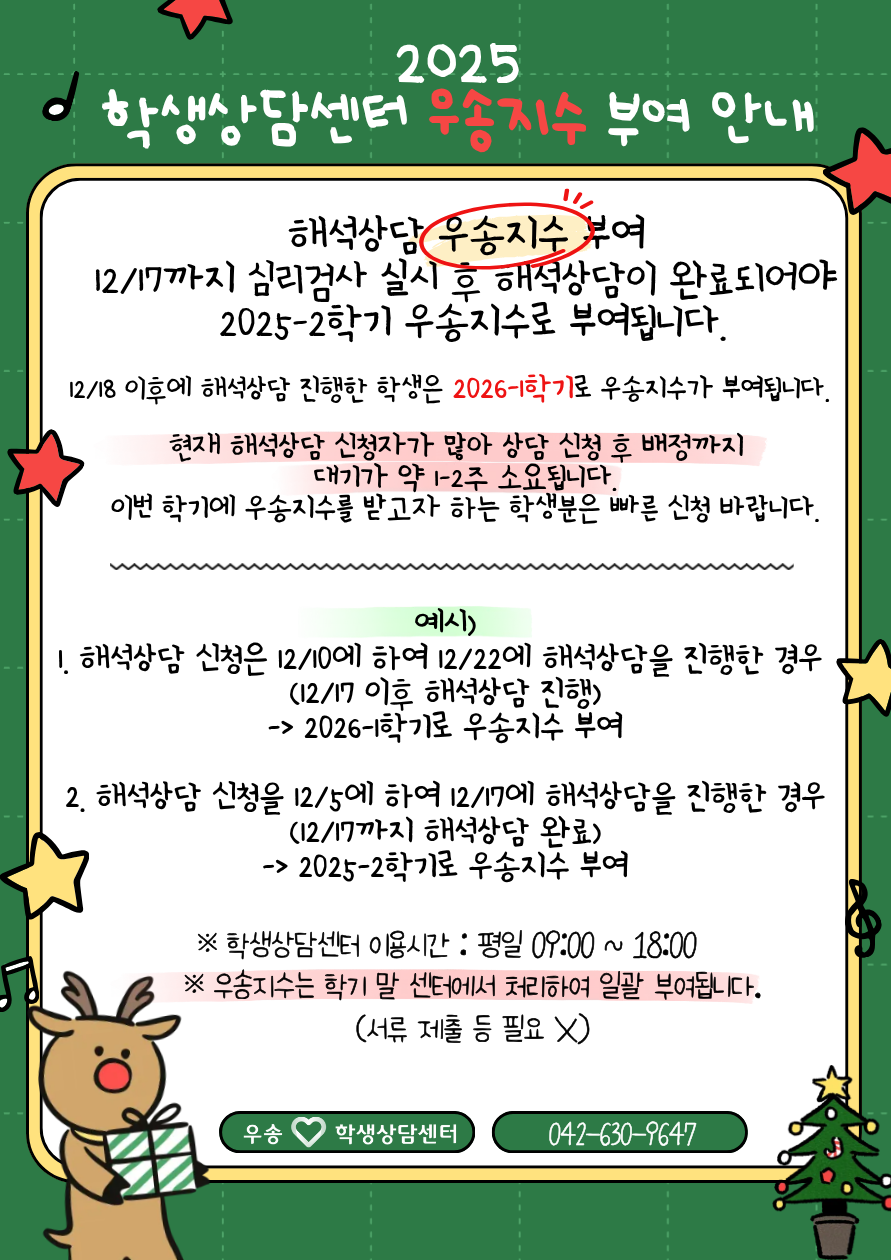 학생상담센터 2025-2학기 우송지수 부여 안내