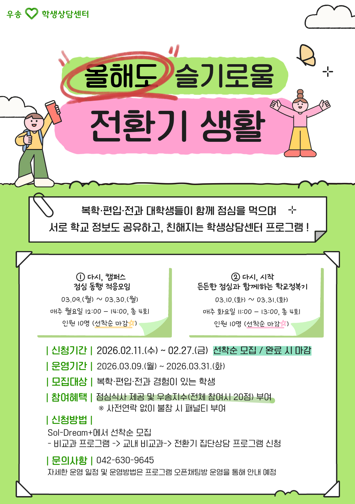 2026학년도 1학기 전환기 대학생 적응지원 프로그램 참여자 모집